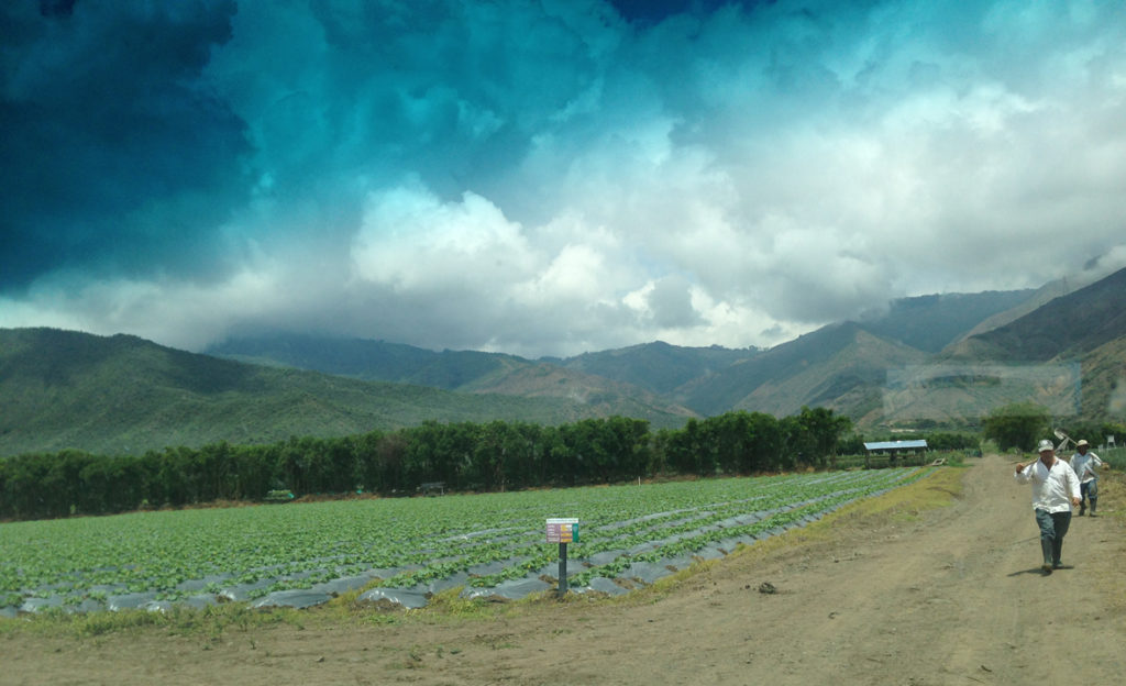 Melones, papaya, sandía, carambolo, guayaba, piña, uva… Enorme, campos muy grandes y variados, desde Toro al Norte hasta Roldanillo al sur. Los ciclos de cultivo son bastante cortos, tres o cuatro meses y siempre hay frutos por tanto. Todos los cultivos son ecológicos, sin abonos químicos o sintéticos, y como curiosidad vi como las abejas juegan un papel primordial en la fecundación de las diferentes plantas, para lo que se ponen panales de abejas en las cercanías de los cultivos.