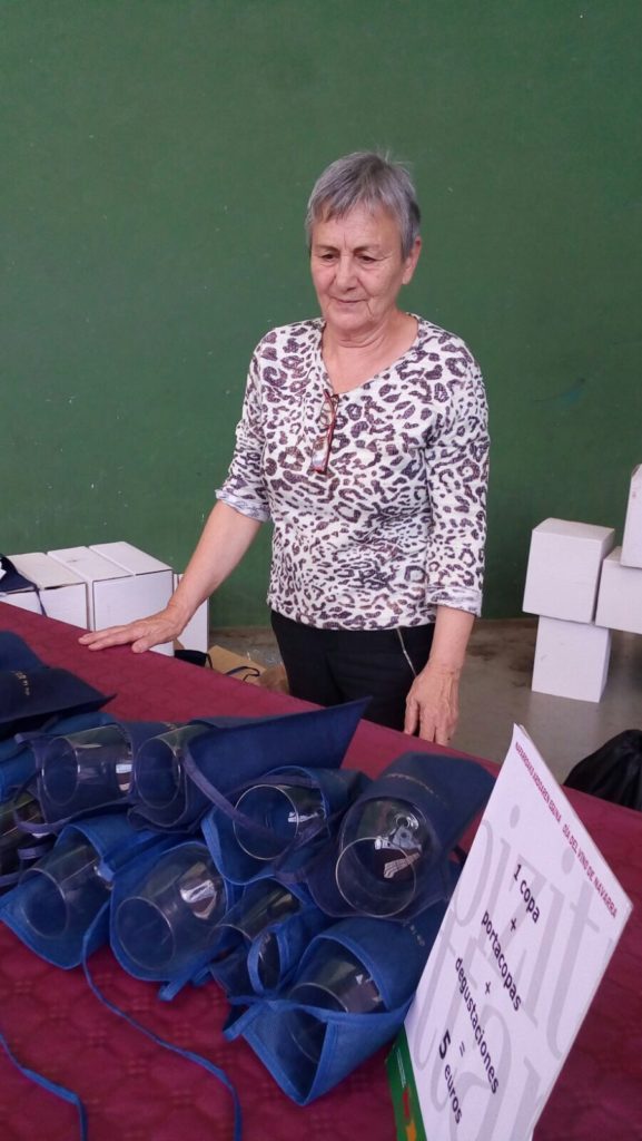 A la entrada del Frontón se podía comprar una copa de vino y un portacopas para acceder al recinto y degustar los vinos de las bodegas presentes.